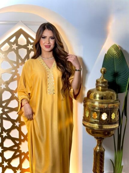 Robe d’hôtesse moutarde avec perlage fait à la main ✨️ qualité premium