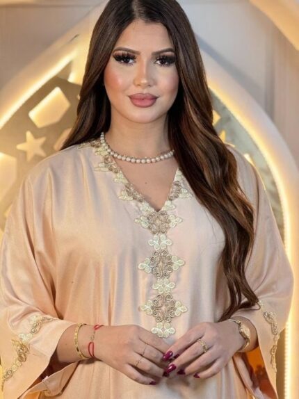 Robe d’hôtesse avec un perlage fait à la main ✨️ le tissu Mlifa de haute qualité.