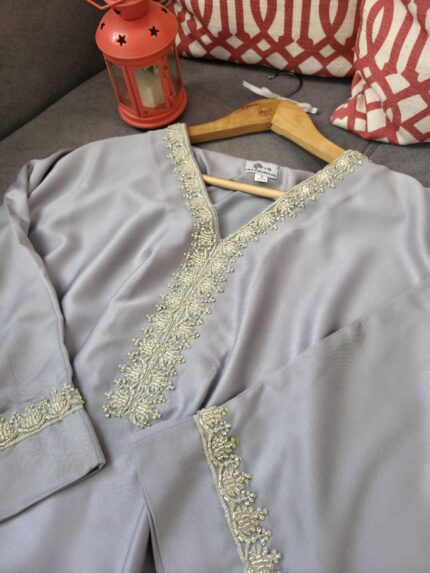 Robe d’hôtesse grise avec perlage fait à la main ✨️ qualité premium 🌸