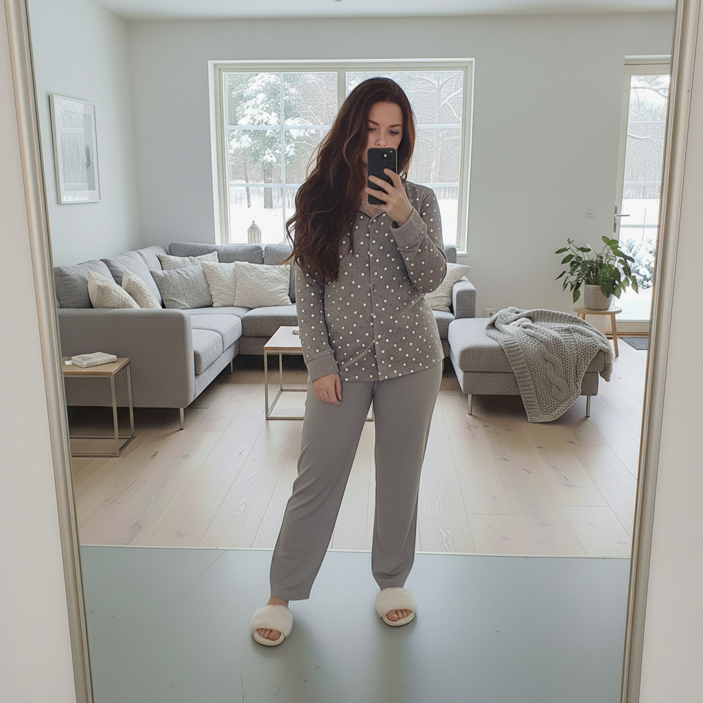 Optez pour le charme intemporel avec ce pyjama gris deux-pièces, parfait pour les soirées hivernales et les matins cocooning.