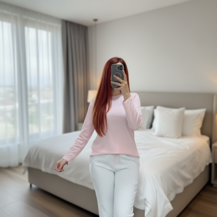 Laissez-vous séduire par ce pyjama TRESS au design féminin et raffiné. Composé d’un haut uni à manches longues avec une encolure boutonnée, il apporte une touche chic tout en restant ultra confortable. Le pantalon clair à motifs délicats ajoute une note douce et élégante, parfaite pour les moments de détente à la maison.