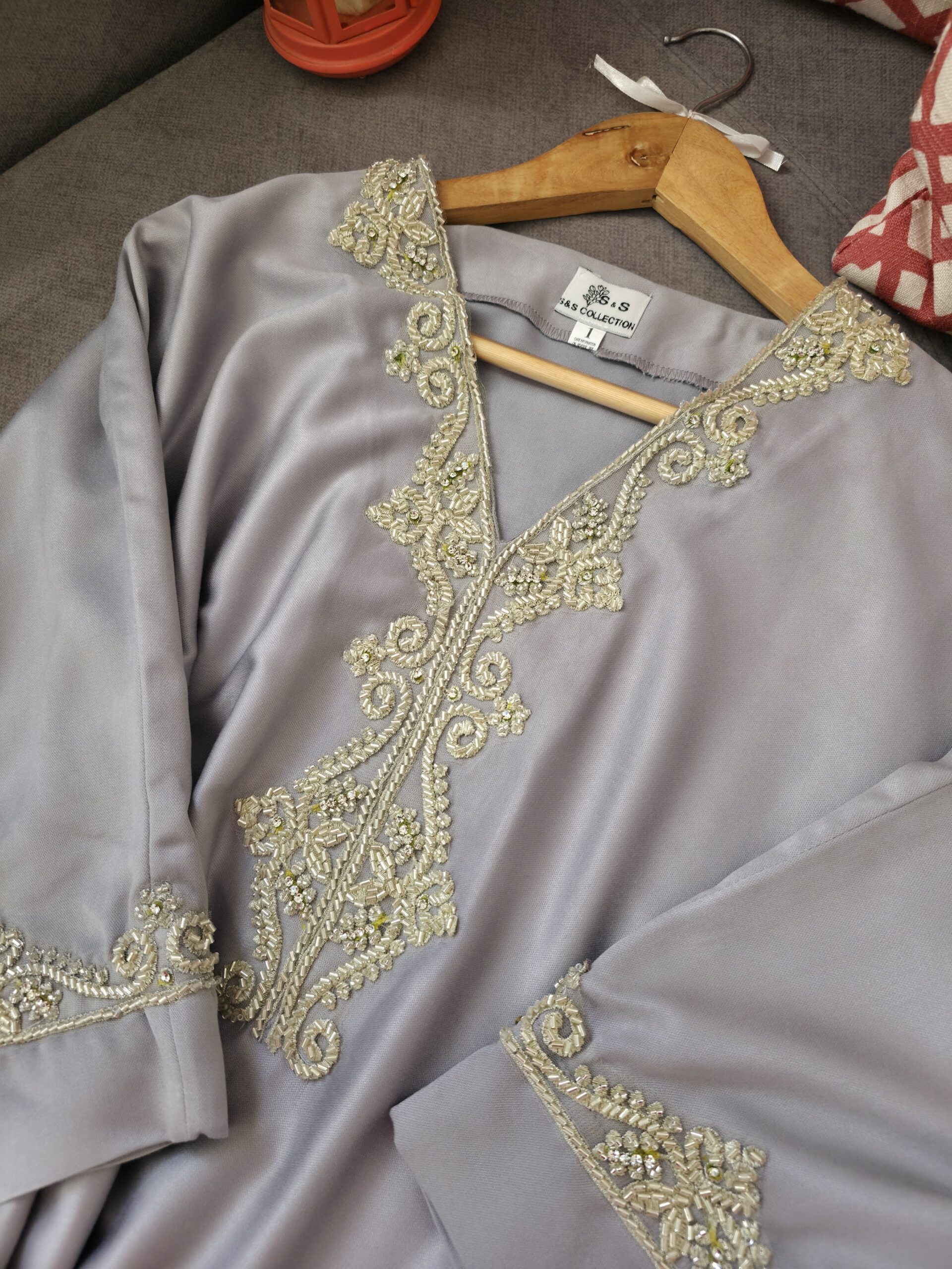 Soyez le premier à laisser votre avis sur “Robe d’hôtesse avec perlage fait à la main ✨️ le tissu mlifa de haute qualité 🌸” Annuler la réponse